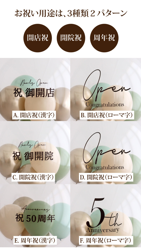 | 用途 | 開店祝い 周年祝い 開院祝い 開業祝い オープン祝い 新事務所設立 事務所開き 祝電 バルーン電報 花以外 美容院 美容室 サロン カフェ 会社 喫茶店 |