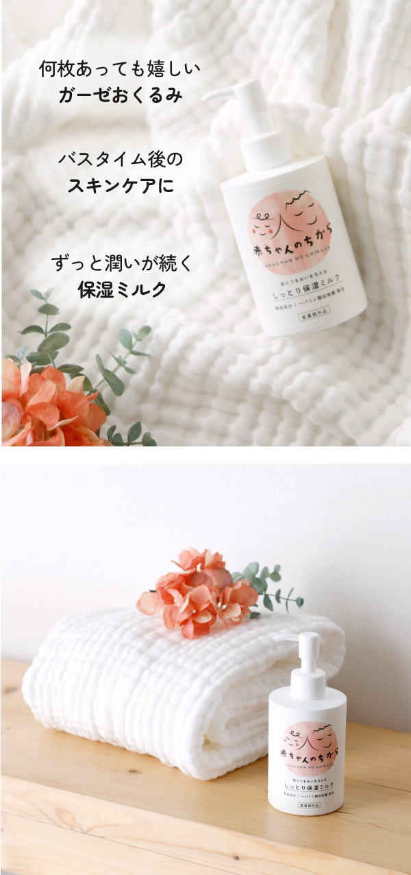 | セット内容 | ・6重ガーゼおくるみブランケット ・あかちゃんのちから保湿ミルク |