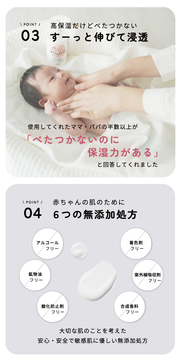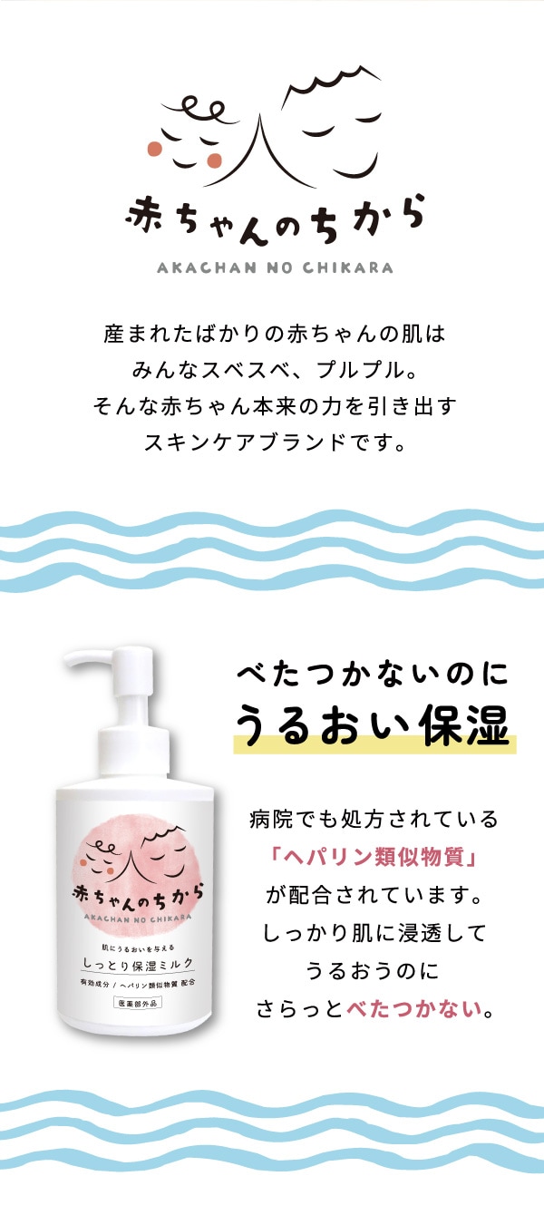 | 備考 | 【保湿ミルクについて】 ・お肌に異常が生じていないかよく注意して使用してください。 ・本品がお肌に合わない時即ち次のような場合には、使用を中止してください。 ・乳幼児の手の届かない場所に保管してください。 【商品ついて】 ・ご覧になるモニター環境によって実際のものと多少色が異なる場合がございます。 |