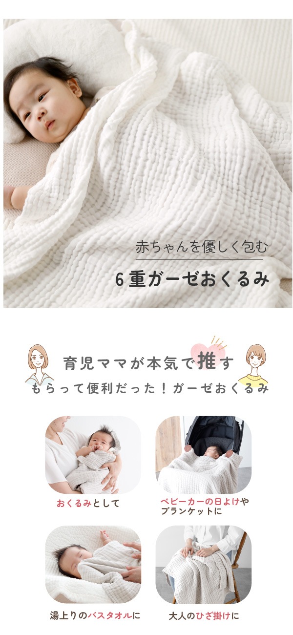 | 素材 | ・6重ガーゼおくるみブランケット:綿100% |