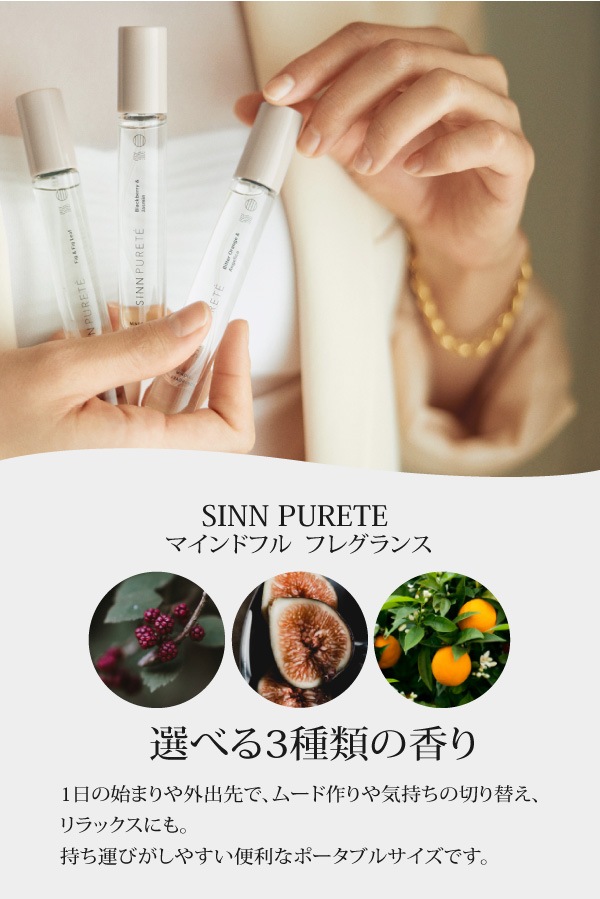 SINN PURETE マインドフルフレグランスは、ポーチにも入る便利なポータブルサイズ。