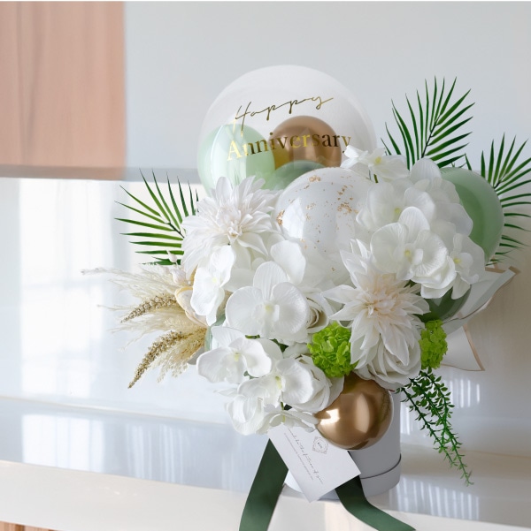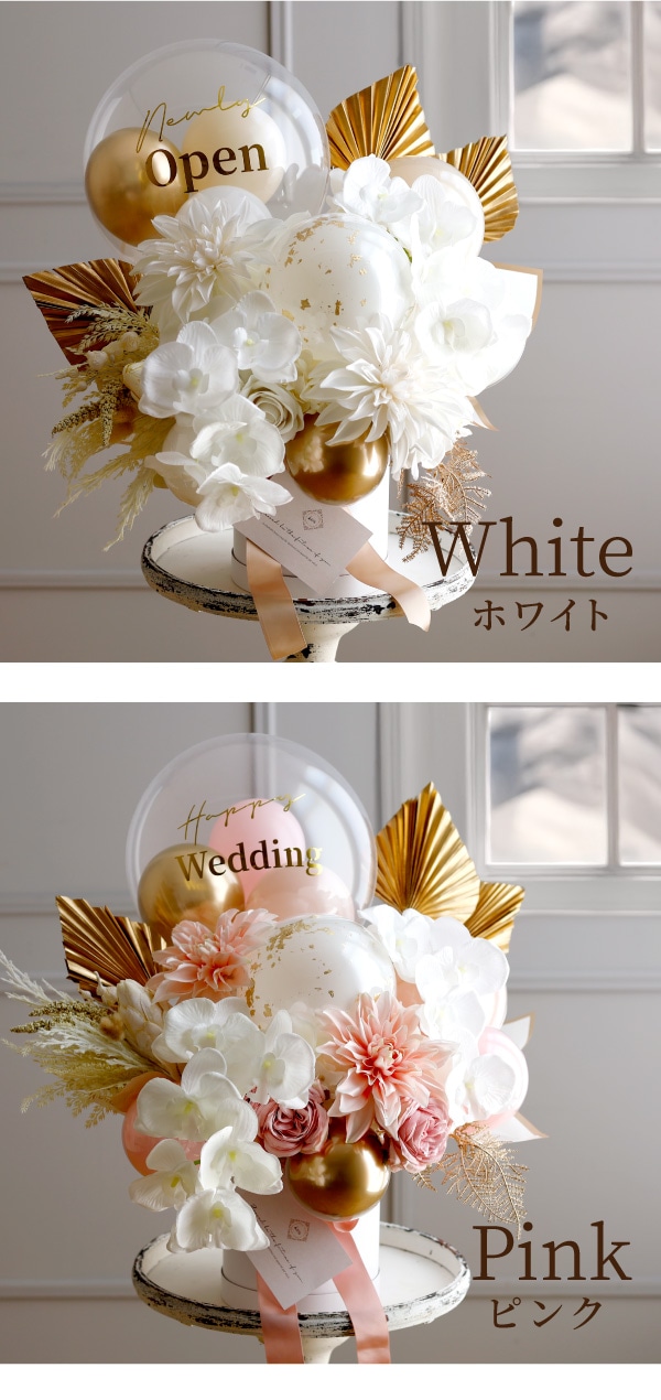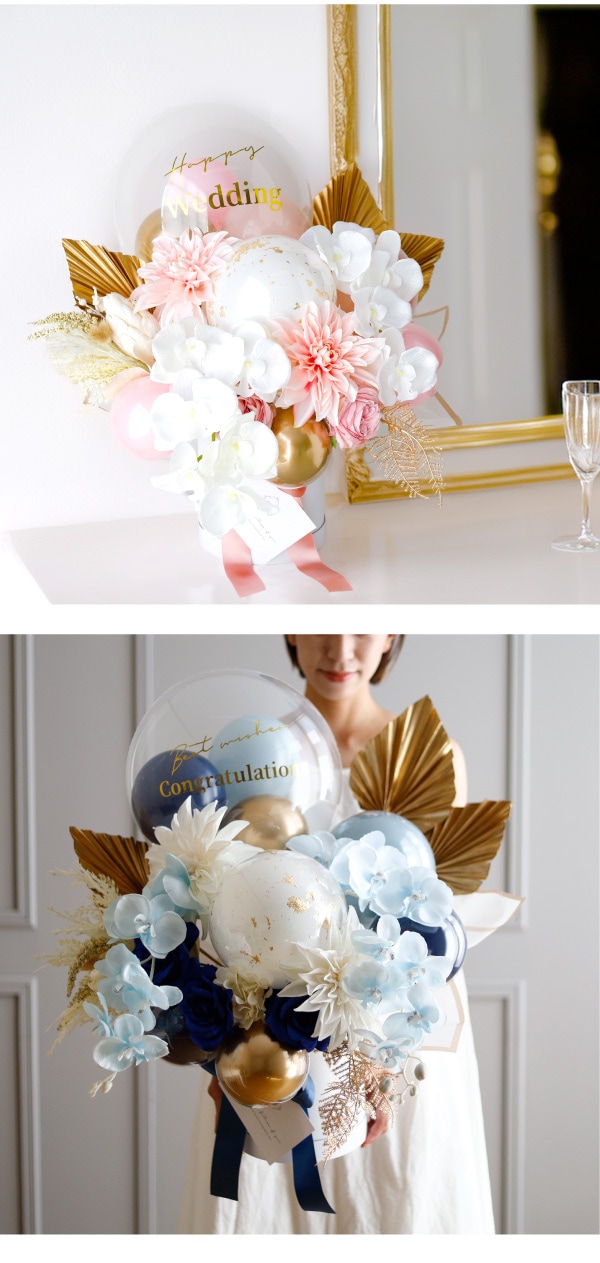 | セット内容 | ・アーティフィシャルフラワー ・透明バルーン ・ラバーバルーン ・リボン ・おもり ・円筒ボックス |